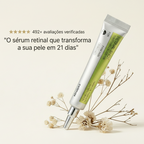 O Retinal Shot contém 0,1% de retinal puro — não retinol. O retinal é 11× mais eficaz porque se converte em ácido retinóico numa única etapa, enquanto o retinol precisa de três.