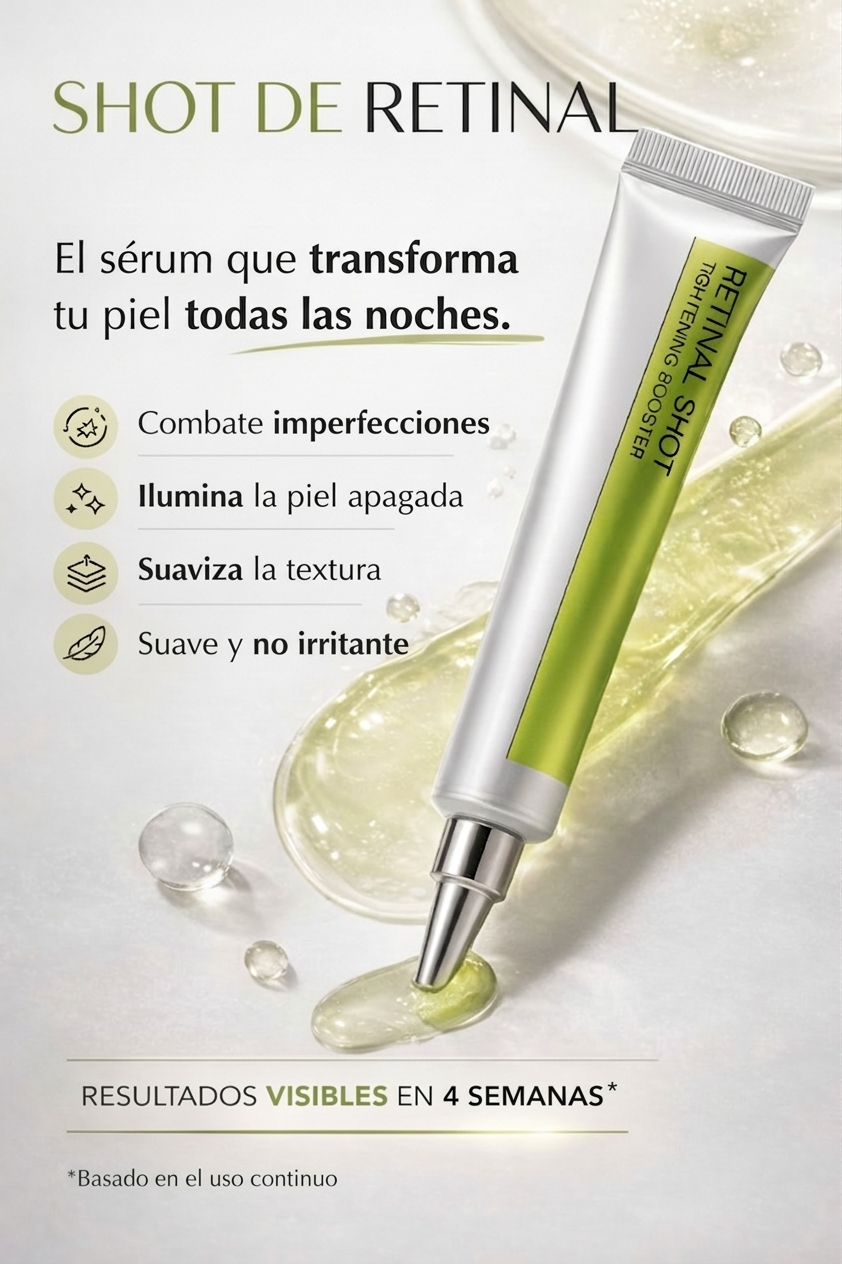 Aplica en noches alternas las primeras 2 semanas. Deja que la piel se adapte gradualmente al retinal.